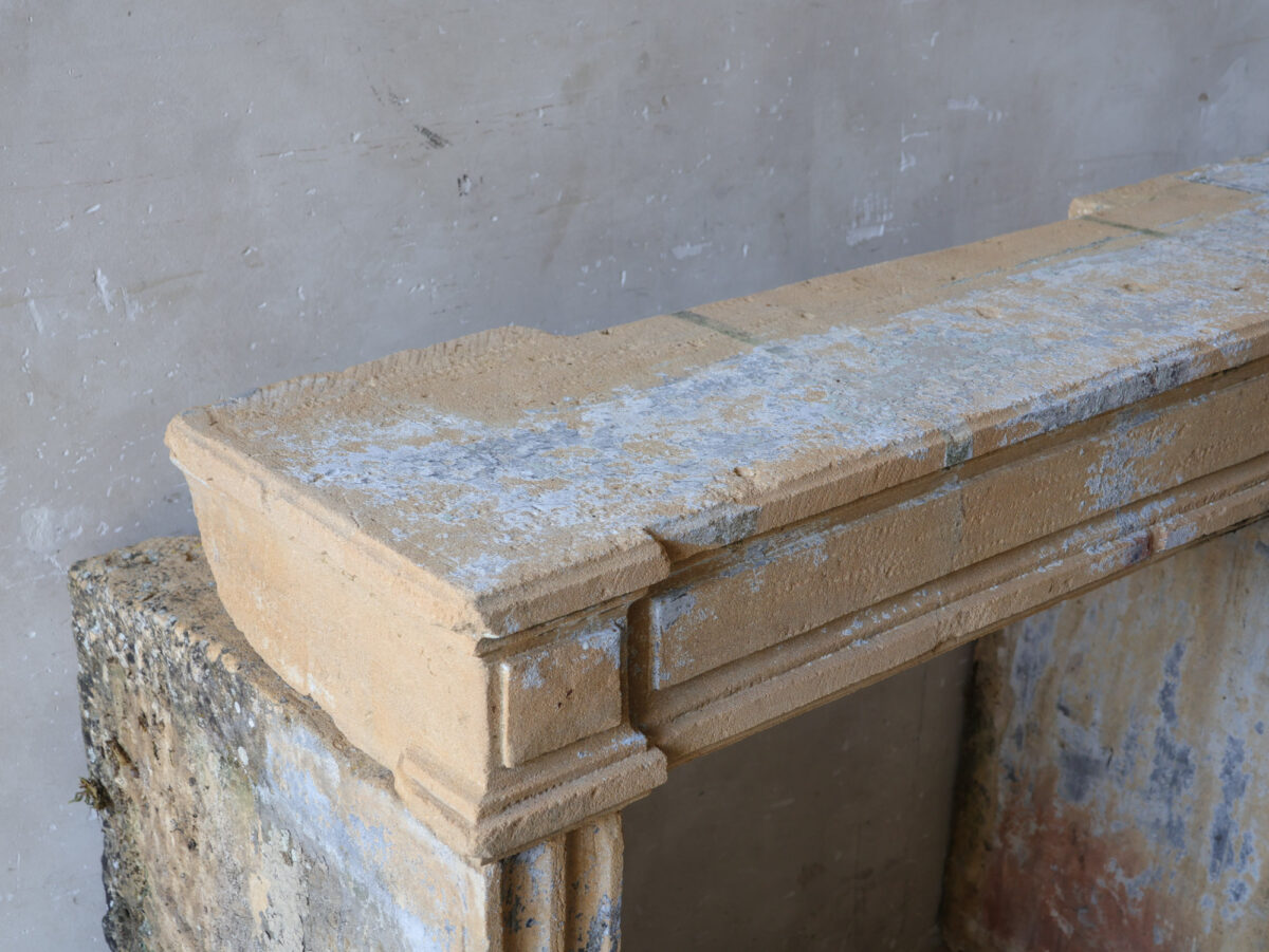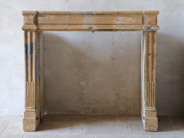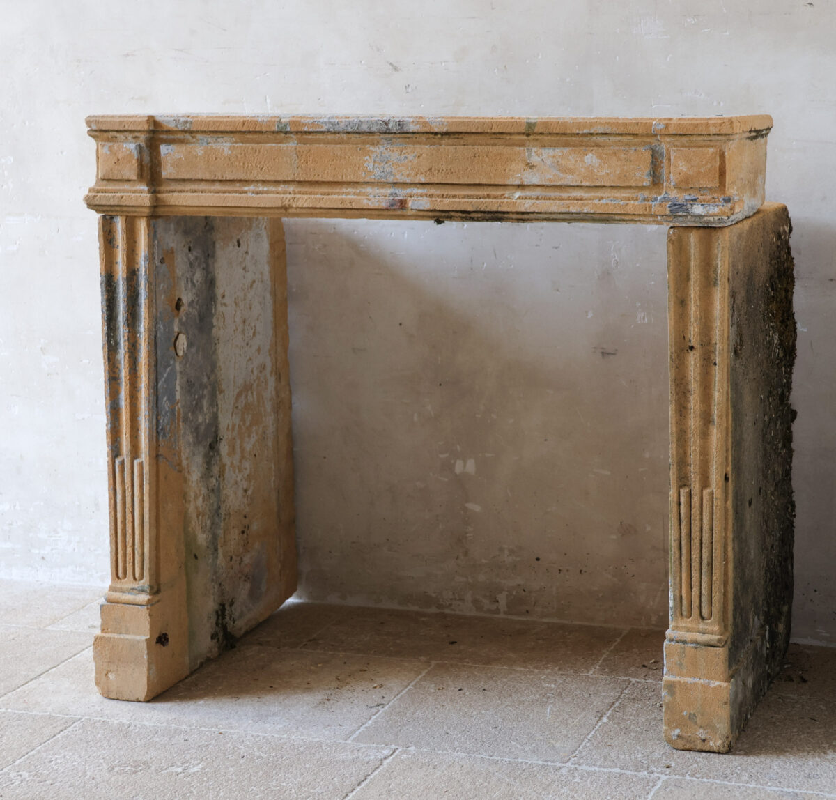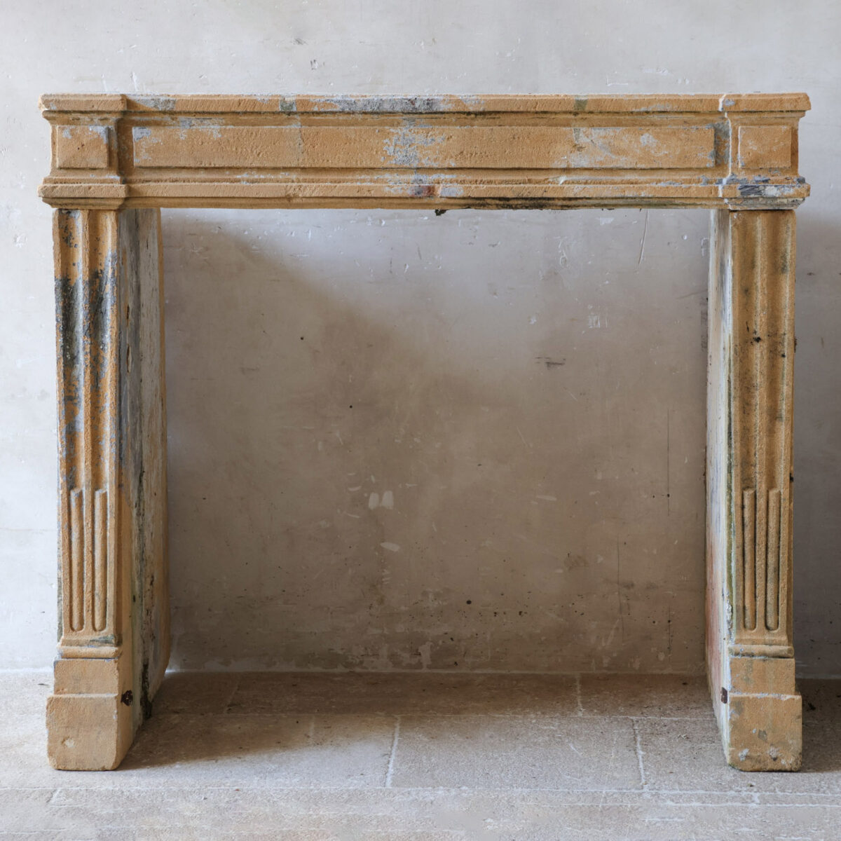 Antiker warmer gelber Louis-XVI.-Sandsteinkamin aus dem 18. Jahrhundert