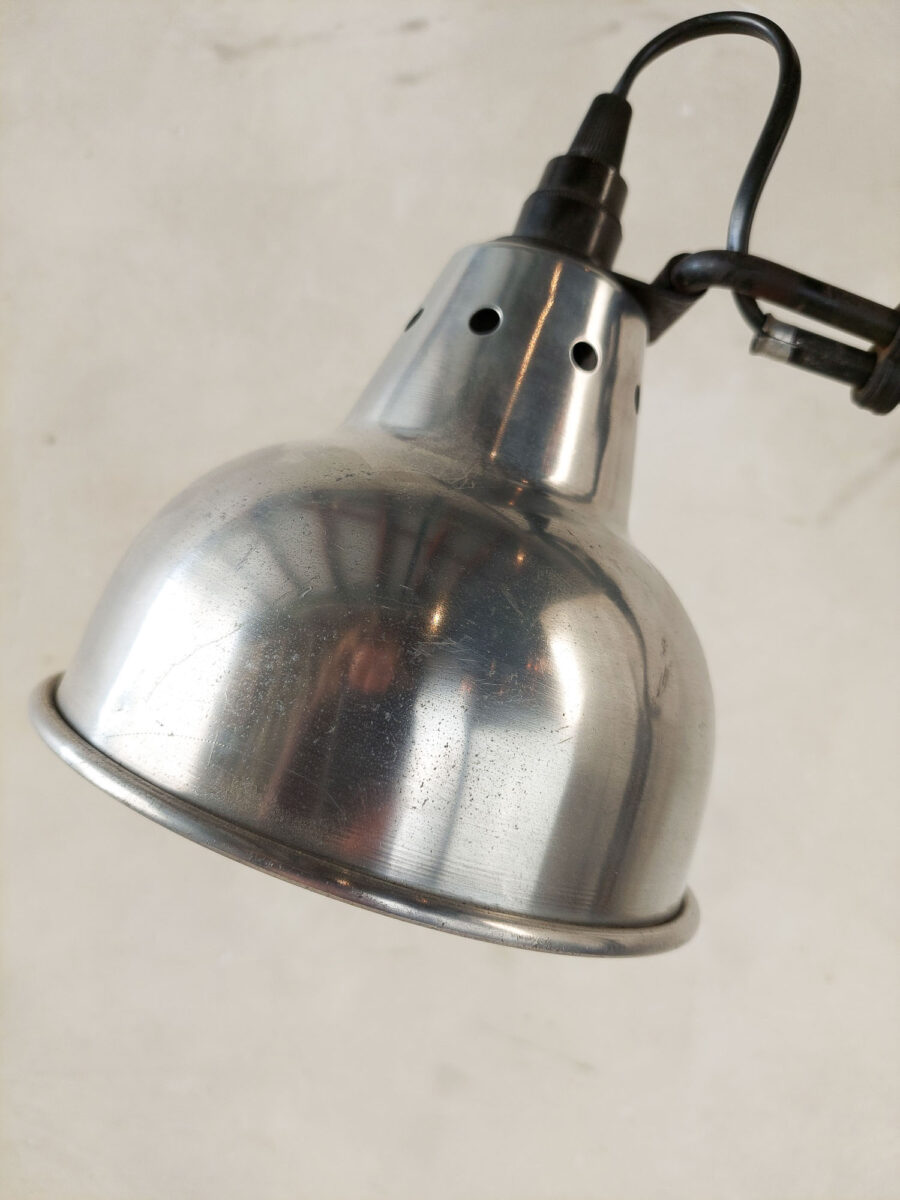 Verstellbare Schreibtischlampe aus den 1930er Jahren, die am Rand festgeklemmt werden kann. Industrieller Look.