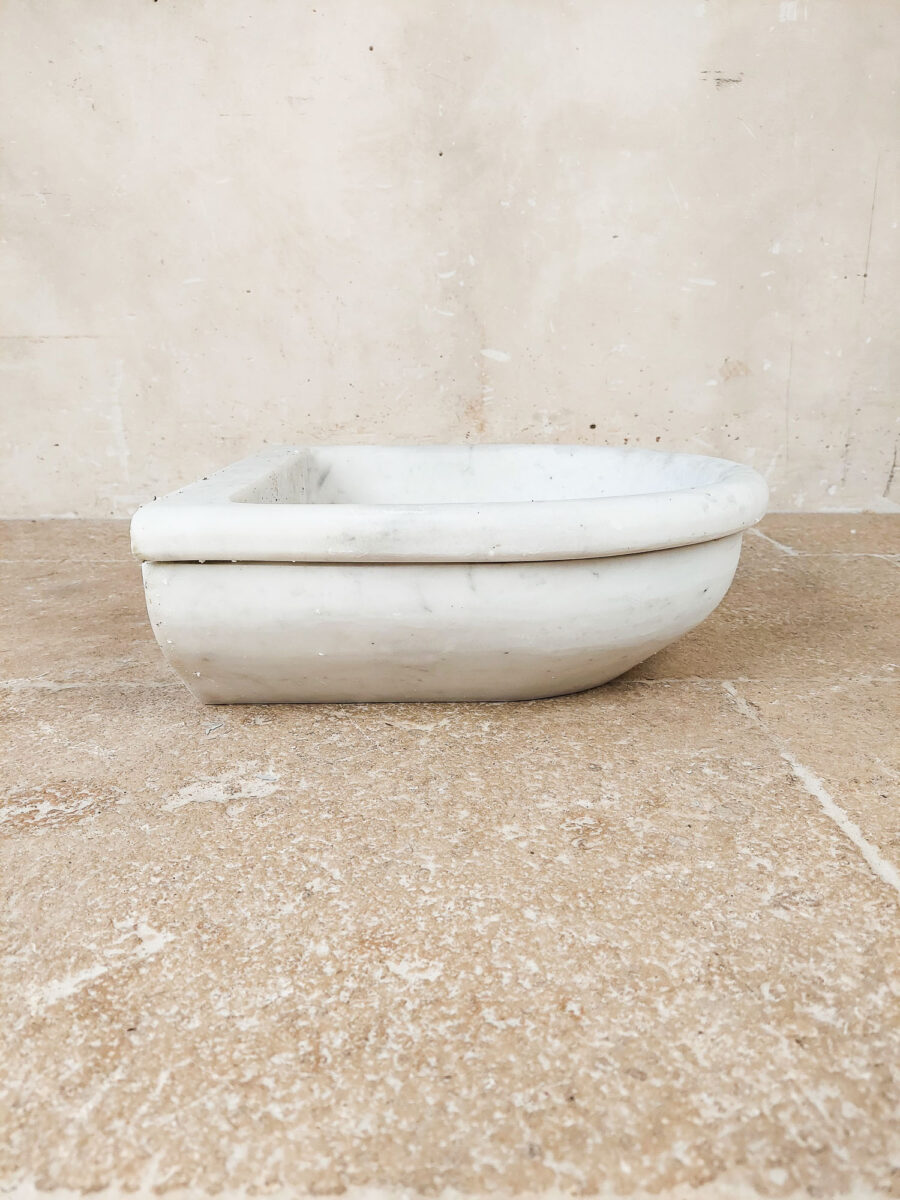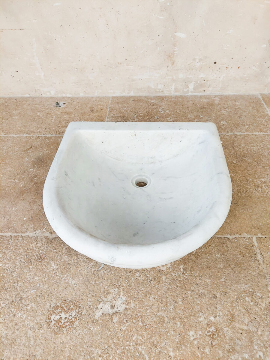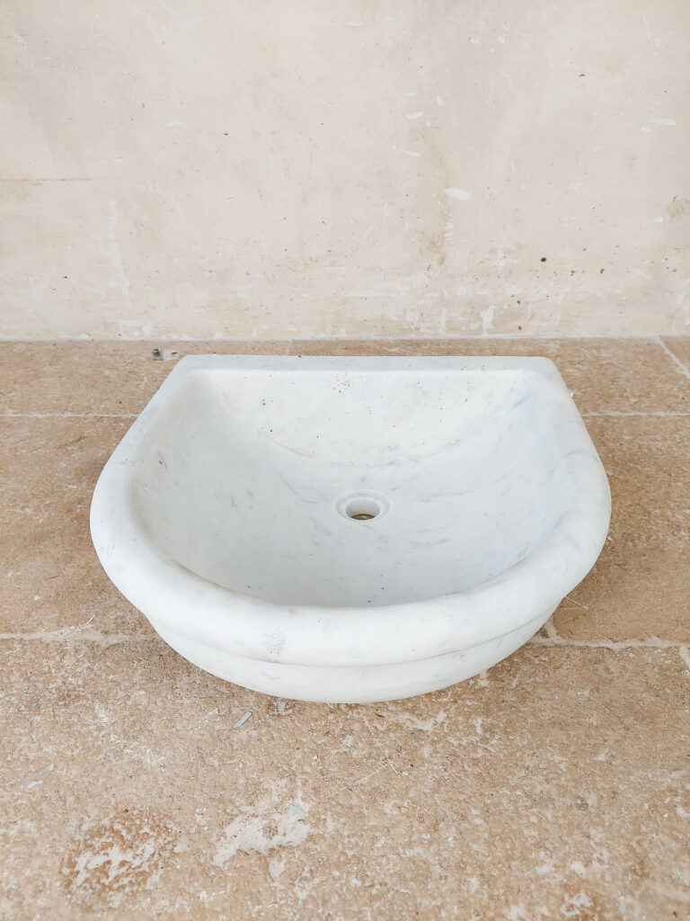 Elegantes Waschbecken aus weißem Marmor. Der schöne weiße Marmor verleiht Ihrer Toilette oder Ihrem Badezimmer ein natürliches und luxuriöses Aussehen.