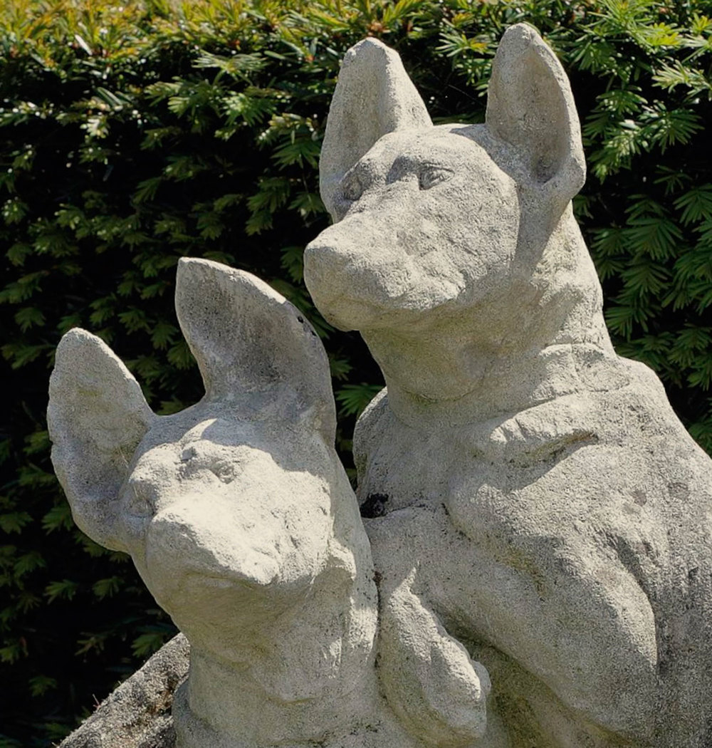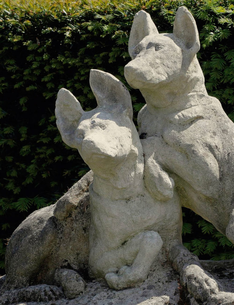 Sandsteinskulptur von zwei Hunden – Frankreich, 19. Jahrhundert