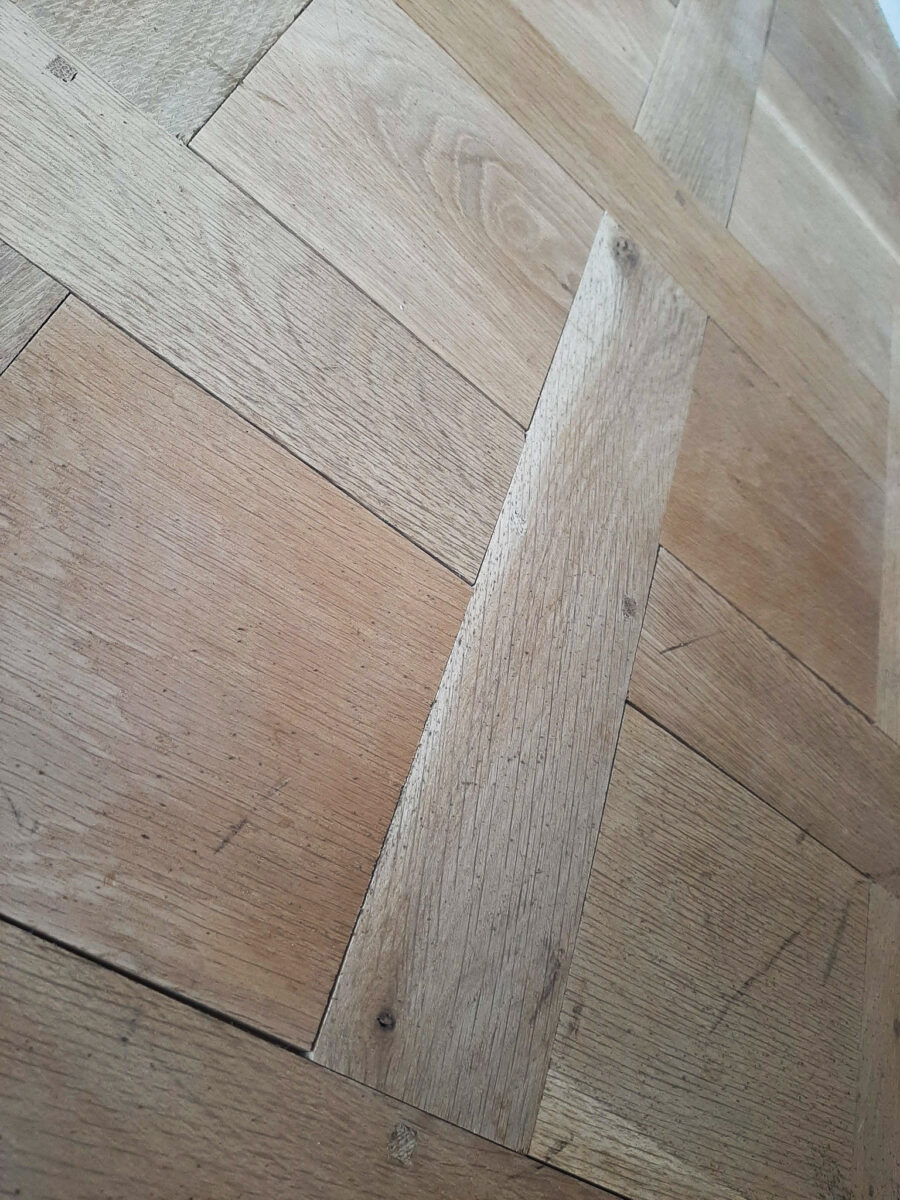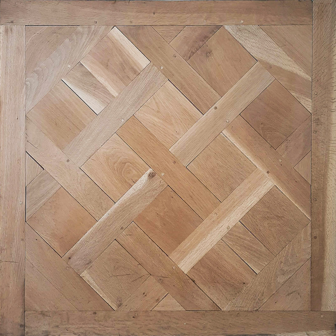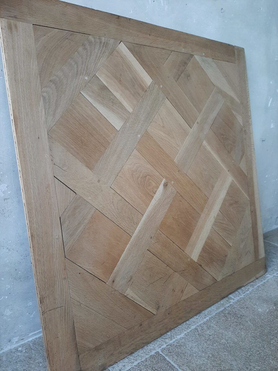 Alter Versailles Tafelparkett Eiche 100 x 100 cm, 3 cm dick.