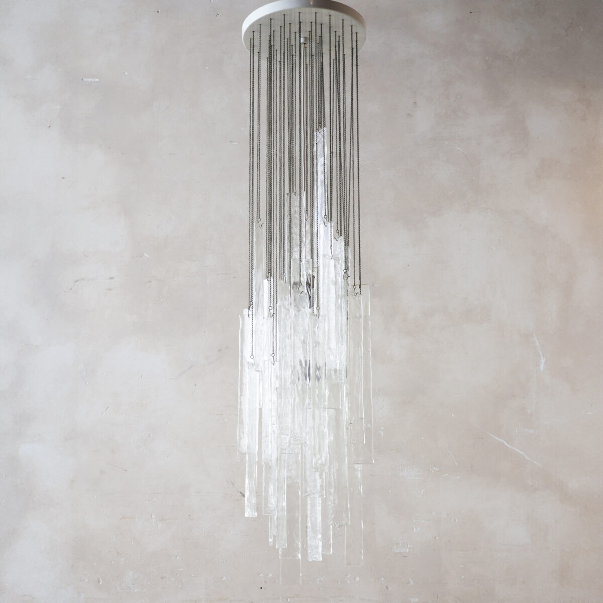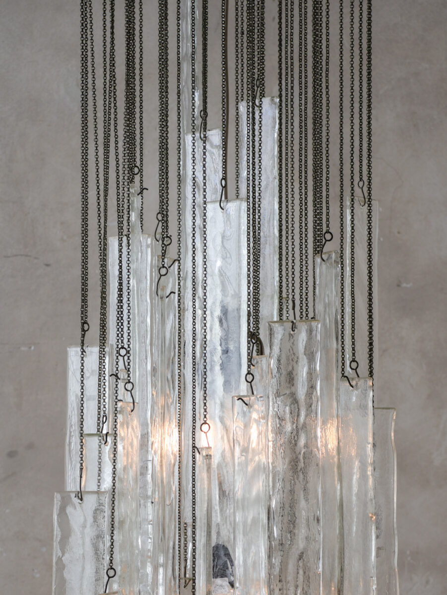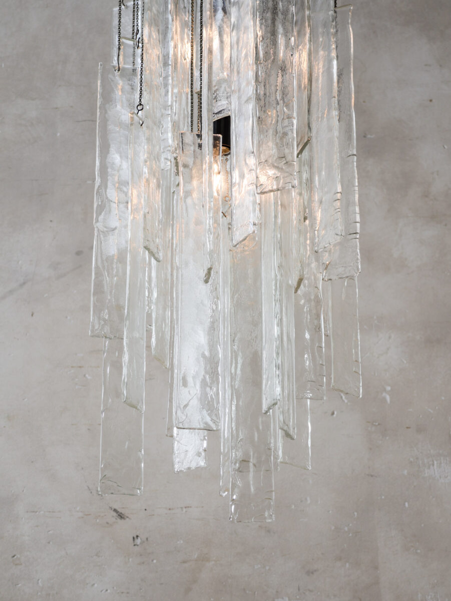 Wunderschöner Vintage italienischer Kronleuchter, Wasserfall-Hängelampe mit Elementen aus Muranoglas von Mazzega aus den 60er-70er Jahren.