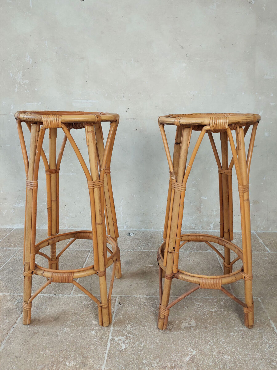 Vintage-Rattan-Tiki-Bar-Set mit zwei Rattanhockern