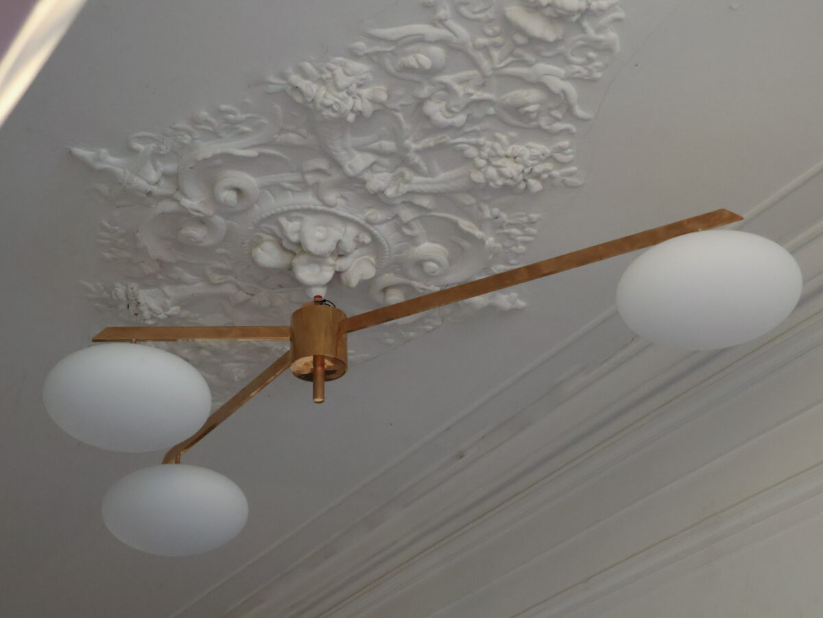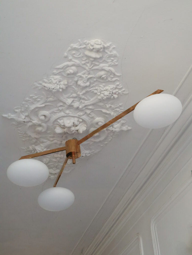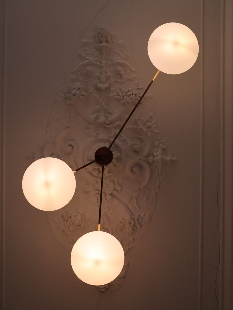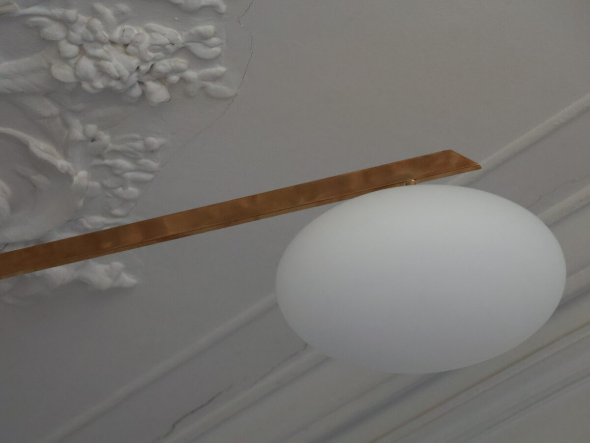 Das minimalistische und zeitlose Design macht diese Leuchten sehr vielseitig. Sie eignen sich perfekt als Deckenleuchte (Plafonnière), können aber auch als auffällige Wandleuchte montiert werden. Das warme Messing und das diffuse Licht sorgen für eine elegante Atmosphäre.